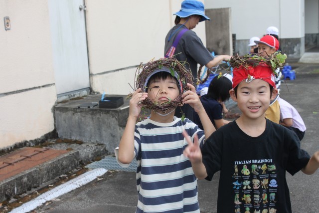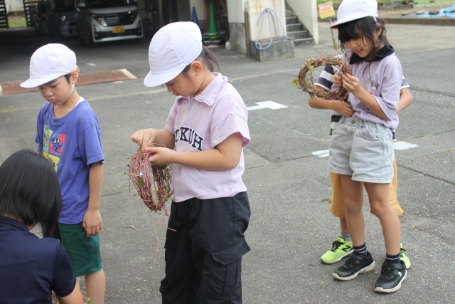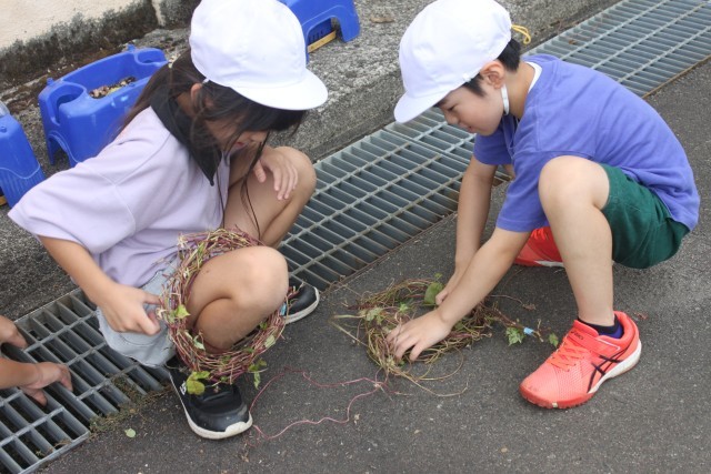 今日の1年生の生活科は、アサガオのつるを使ってリースの土台を作りました。きれいな花を咲かせていたアサガオでしたが、秋になり枯れてしまいました。そのアサガオのつるを使ってリースの土台を作りました。今後、木の実などで飾り付けをして素敵なリースを作る予定です。これからの活動が楽しみです!
