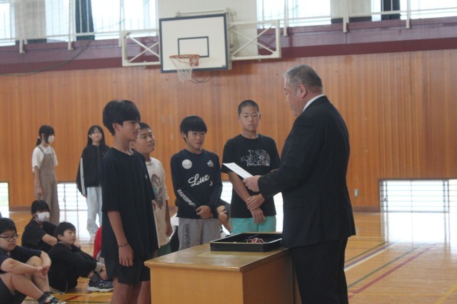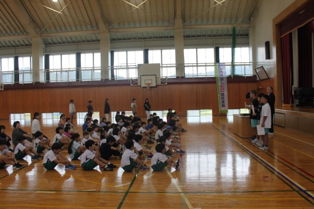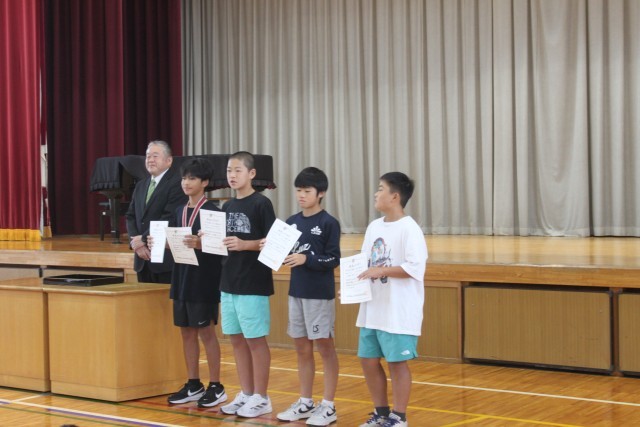 今朝は大和地区親善陸上大会の表彰を朝会時に行いました。高跳び、幅跳び、100m、800m、1500m、ソフトボール投げ、リレーなどの種目にそれぞれ参加した6年生。中には優勝した児童もいました。優勝した児童からは「みんなの応援のおかげです。」と全校のみんなに感謝する温かい言葉がありました。これからも体育、運動、体を動かす遊びが好きな三用っ子でいてほしいと思います。参加した6年生、応援した全校、みんなよく頑張りました!