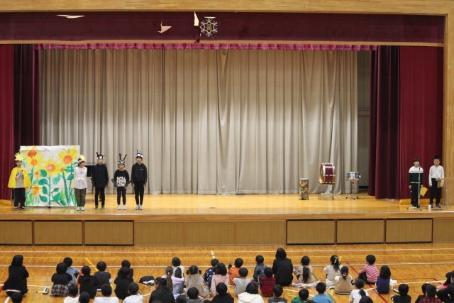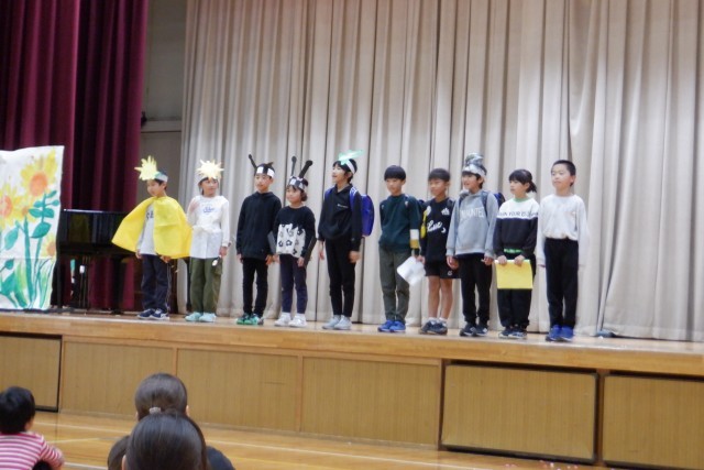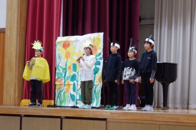 学習発表会3年生「すいせんのラッパ」。国語の教科書で学習したことを自分たちで考えたアイディアを入れながら、生き生きと発表しました。リコーダーの音色、衣装、小道具、動き、どれも物語の世界にぴったりでした。素敵な発表でしたね。よくがんばりました!