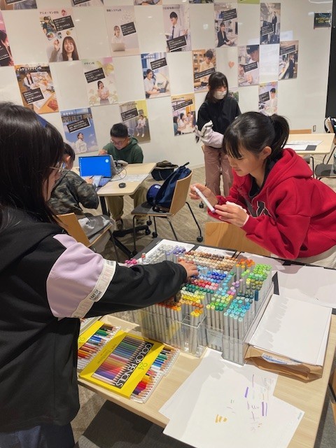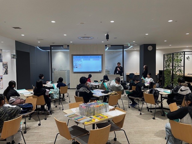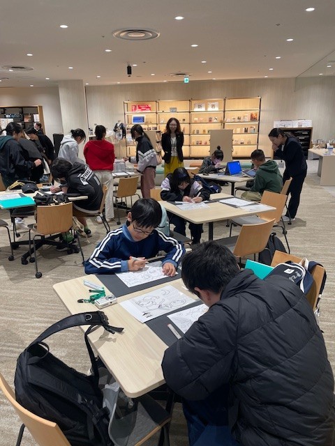 1日目、最初の見学先は「東京工学院専門学校」。色付け体験(本格的なカラー絵筆)をしました。その後、アニメの制作について直接漫画家さんからの話を聞きました。次は「リステル新宿」で昼食。その後「東京製菓学校」です。全員元気いっぱいだそうです。