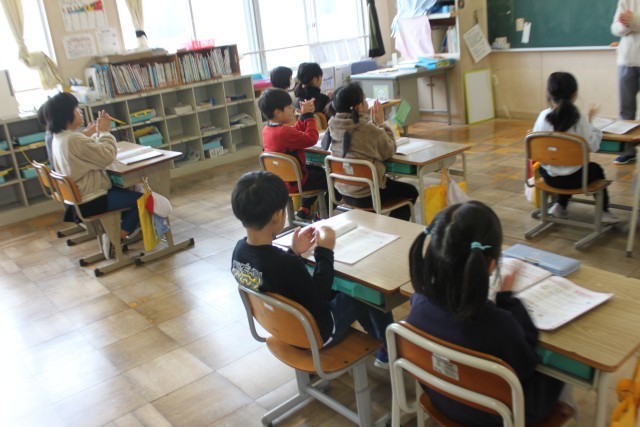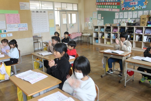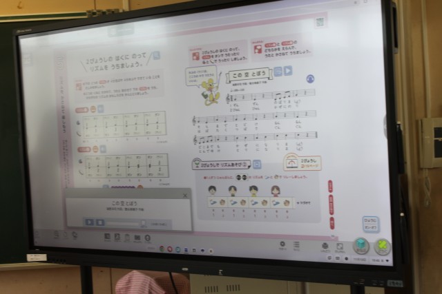 今日の2年生の音楽は、2拍子の拍にのってリズムを打つ学習でした。2拍子の曲にあわせて、リズムをとりながら手拍子をしました。四分音符や四分休符を確かめながら、「タン」「ウン」とテンポよく手拍子をする子どもたち。楽しそうに取り組んでいました。
