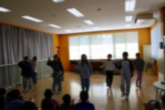 4~6年生のダンスクラブの子どもたちがダンスを披露しました。クラブの時間に練習したキレキレのダンスをたくさんの人の前で踊りました。踊っている時の表情はとてもにこやかで楽しそうでした。見ている人も楽しんでいました。