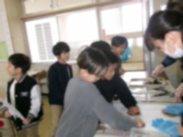 2年生は図工で紙版画に取り組みました。今日はいよいよ刷ります。ばれんを使って友達と一緒に力と気持ちをこめてこすりました。「しっかり写っているかな?」紙をはがすまでは少し不安そうでしたが、はがしてみると「おー!」という喜びの声。イメージどおりに作品が仕上がったようです。