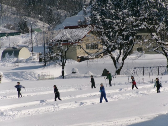 クロスカントリースキー授業が始まりました。2~6年生の子どもたちは、1年ぶりですが昨年までの成果を生かし上手に滑っていました。1年生は初めてとは思えないほど上手に滑っていました。グラウンドのコースを保護者、里山会館ほっかの方々からスノーモービルでつけていただいております。おかげで充実したスキー授業が展開できます。本当にありがたいことです。保護者、地域の方々のご協力に感謝です。