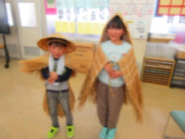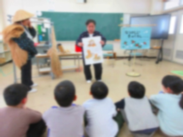 3年生の社会科で地域の人をお招きし、「かわる道具とくらし」についてお話をしていただきました。昔の冬の生活や遊び、食べ物等についてお話ししていただきました。子どもたちは今との違いに驚きながら話を聞いていました。実際に蓑がさを着させてもらい`むかし‘に少しだけタイムスリップしました。