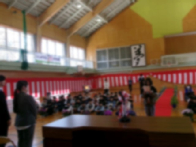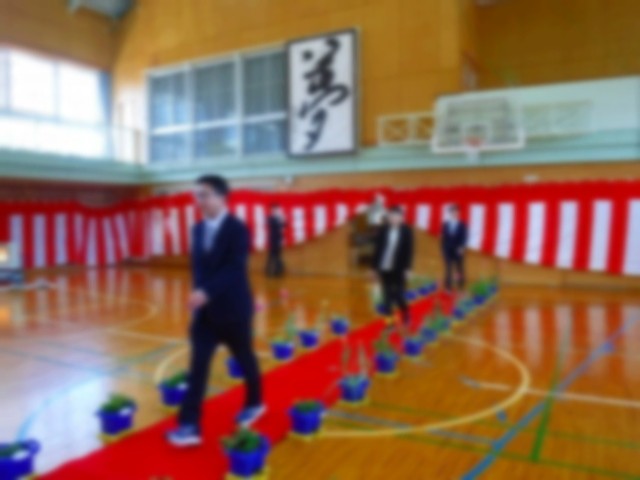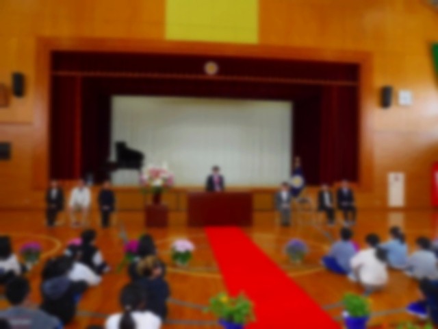 体育館に入場された先生方の姿を、子どもたちは少し緊張しながらも興味津々の様子で見つめていました。