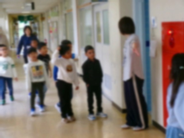 教室に入ると、まずは学校生活のルールをひとつずつ学びます。 今日は「トイレの使い方」について確認しました。「手洗いの仕方」など、先生のお話を真剣な表情で聞く姿が印象的でした。