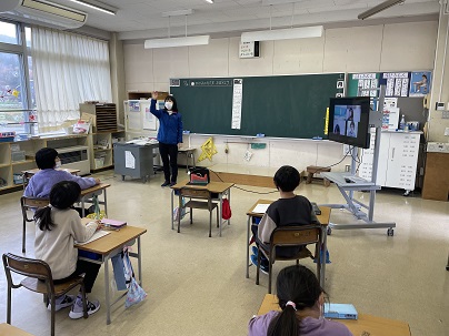 自宅にいるお子さんもオンラインで参加。元気な様子で授業を受けることができました。