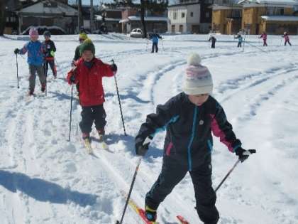 今年の冬は、記録的な少雪となりました。2月上旬の降雪で、ようやくスキーの初滑りができました。快晴のスキー日和となったスキー授業当日は、自分たちで準備をし、スキーを履き、気持ちよさそうに楽しんでいました。今年度の活動は2回となってしまいましたが、スキーを通して、雪とふれあう時間を楽しむ子どもたちでした。