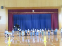 10月の音楽朝会の一回目は、学習発表会の全校発表の並び方の確認と歌の練習をしました。学年別にステージ前やひな壇、ステージに並びます。一人一人の子どもの顔が見えるように、それぞれの立つ場所を確かめました...