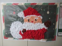 一階の家庭科室前のスペースが、クリスマスのオーナメントなどで飾られています。ALTのジーン先生が、素敵な雰囲気に創り上げてくれました。(消火器は使えるように、低めの箱の配置になっています。)また職員室...