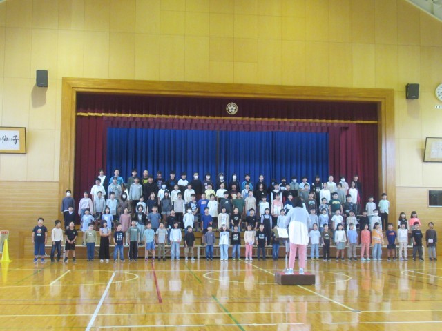 全校で今年も「大好きな大崎を」の歌声を体育館いっぱいに響かせられるよう、子どもたちは頑張っています。
