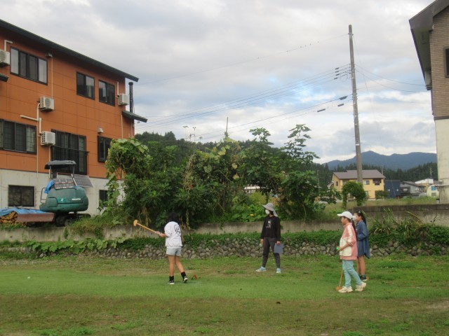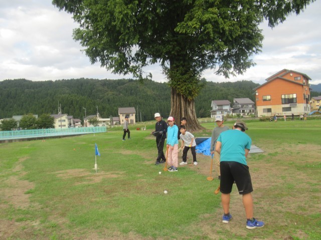 「今日はホールインワンがあったんだよ。」「こういう天気だと動きやすくていいよね。」と、グラウンドゴルフクラブの子どもが声をかけてくれました。