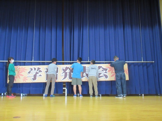 明日の学習発表会のために、6年生が前日準備を行いました。
