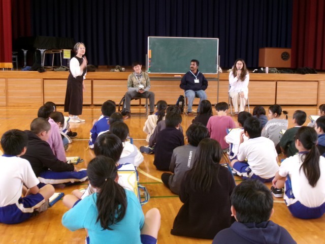 最後に留学生の方に、質問をしました。ALTの先生から通訳してもらい、子どもたちは、「どんなお菓子が好きですか?」「好きなダンスは何ですか?」など、自分たちの生活に身近な質問をたくさんすることができました。