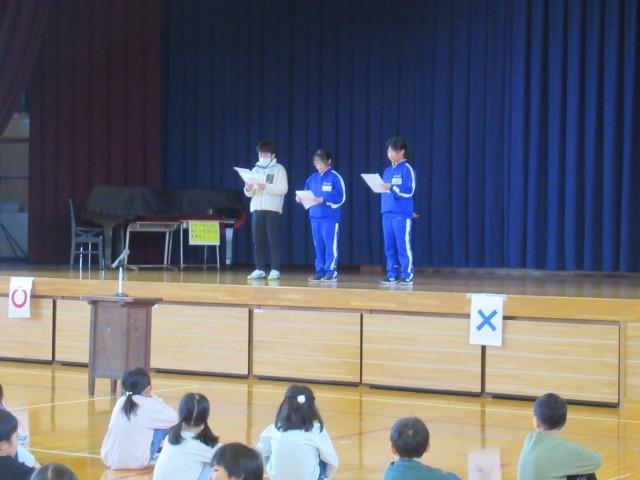本日の児童朝会は、図書委員会の子どもたちが企画・運営をしてくれました。