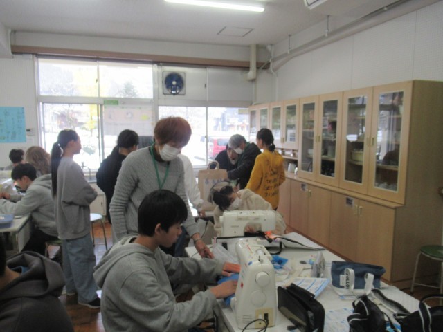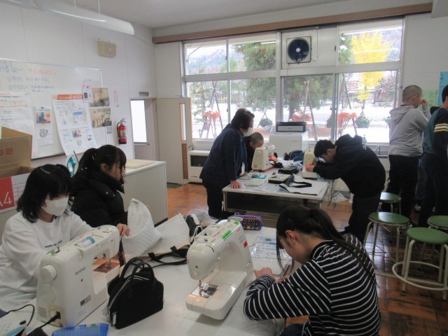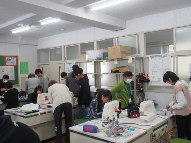 2時間連続の家庭科授業を2回行って、ほぼ全員が完成することができました。頑張りましたね。教えていただいたボランティアのみなさん、ありがとうございました。