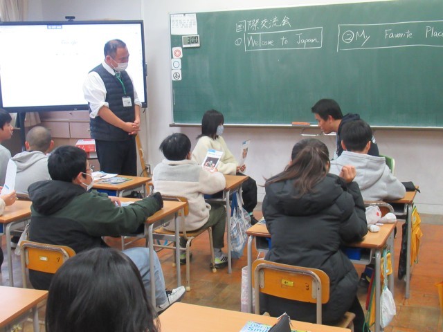 一人一人が電子黒板や作成したシートを使って、留学生の方に英語で質問をしたり、紹介をしたりすることができました。