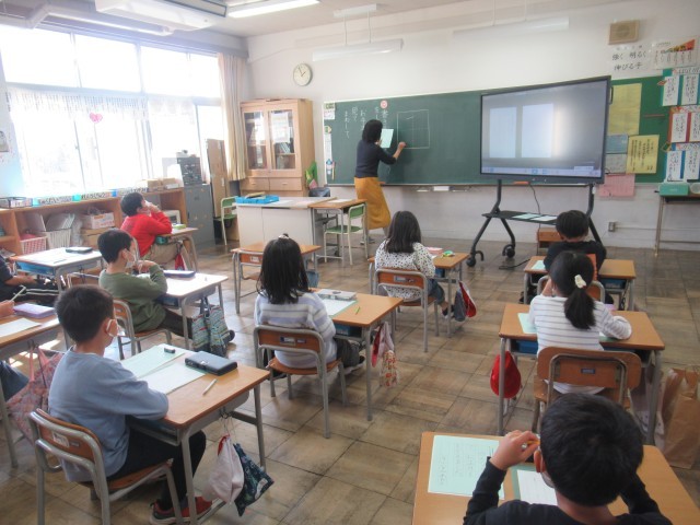 2年生が、硬筆の書初めの練習をしています。