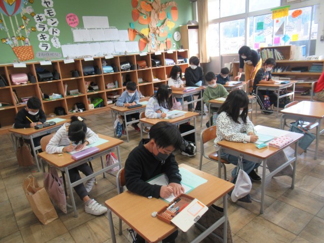 みんな、一字ずつとても一生懸命に書いています。思うような字が書けるまで、何度も消しゴムを使って書き直す姿が、たくさん見られました。
