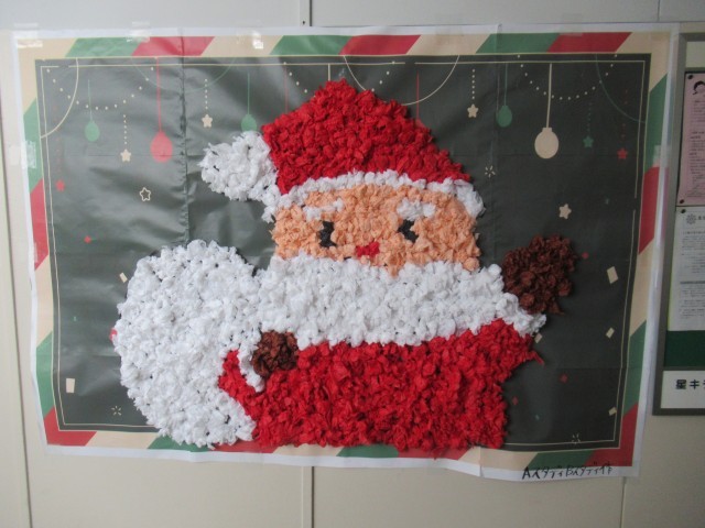また職員室前の廊下には、AスタBスタの子どもたちが作ったサンタの絵も掲示されています。