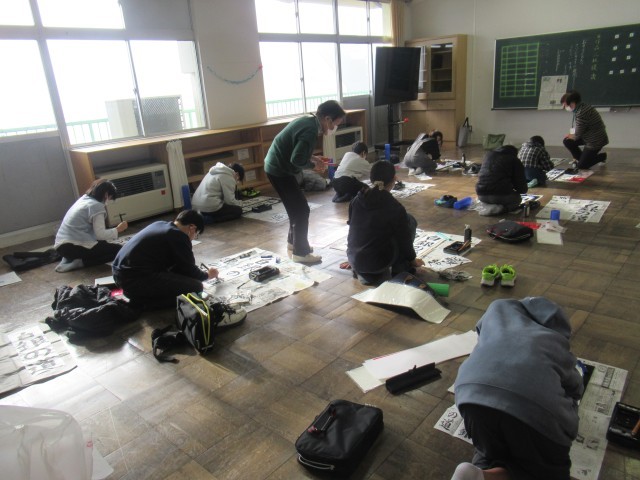 今日の書き初め教室は6年生です。筆の止め、払い、一画目の筆の置く位置など、ゆっくりと筆を動かしながら、手本をよく見ながら書いている様子は、さすが6年生です。