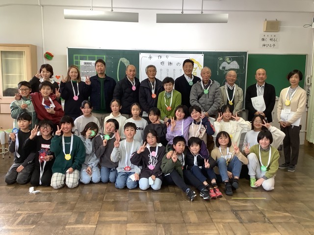 5年生が、学校田の米作りでお世話になった皆様をお迎えして、感謝の会を行いました。