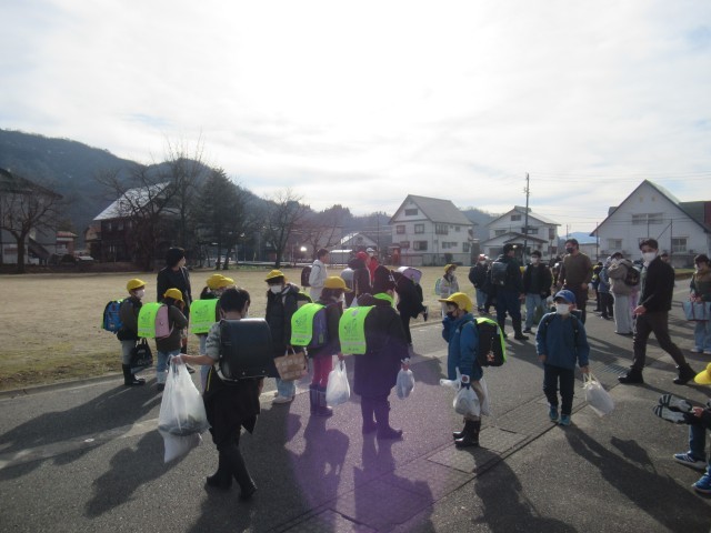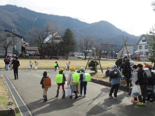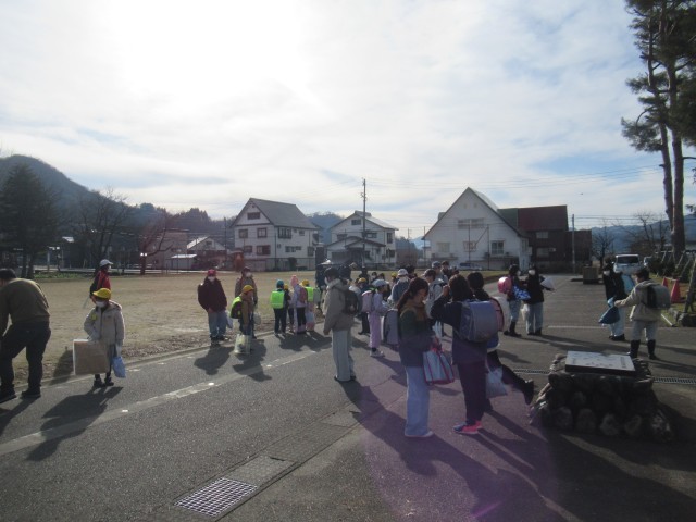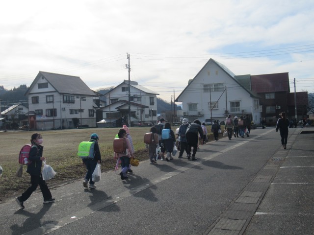 12月とは思えない晴れた空のもと、子どもたちは元気に玄関前に集合し、帰って行きました。