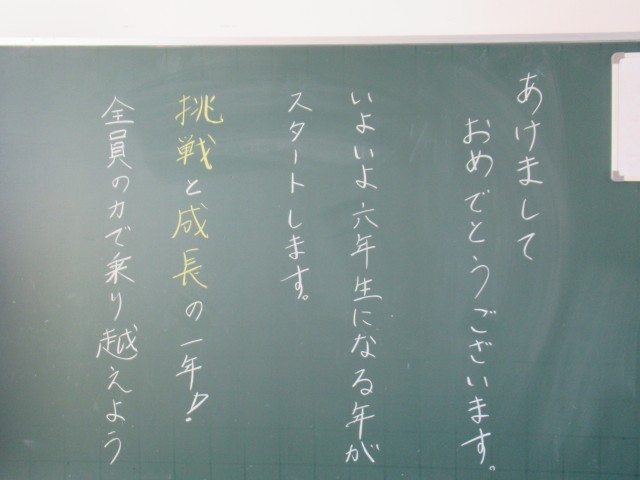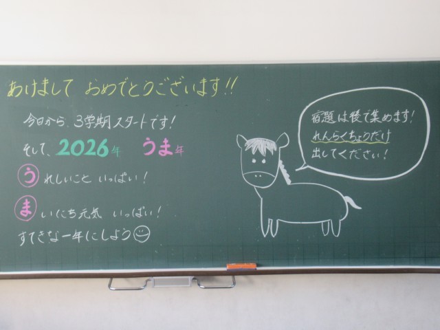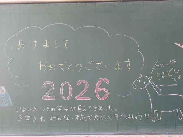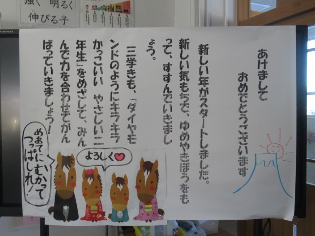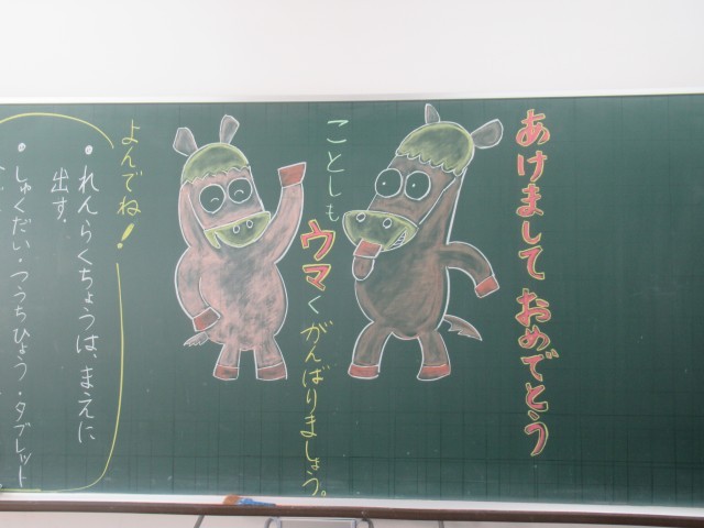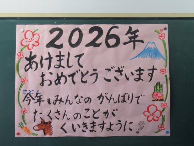 子どもたちの登校に向けて、各担任からのメッセージがそれぞれの教室にありました。これを見たり読んだりした子どもたちが、3学期がんばろう!という気持ちになる言葉ばかりでした。