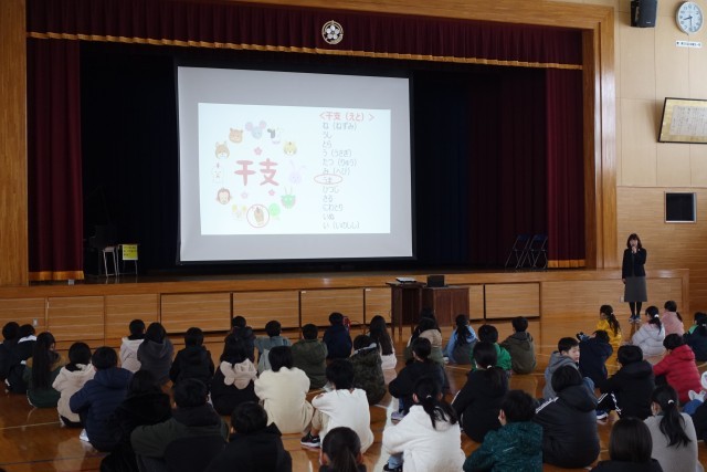 始業式では、まず校長先生から午年にかかわるお話とともに「新年という節目に、改めて自分の目標を確かめ、目指す姿に向かって進んでいきましょう」と伝えていただきました。
