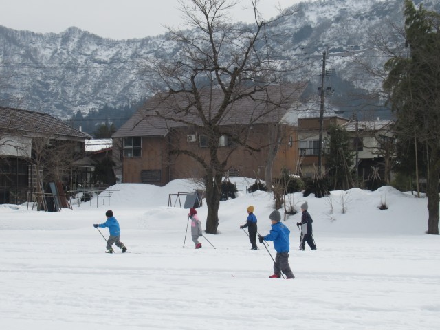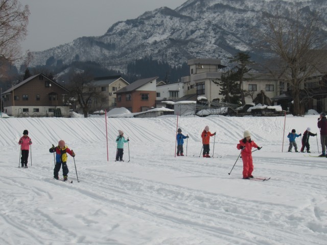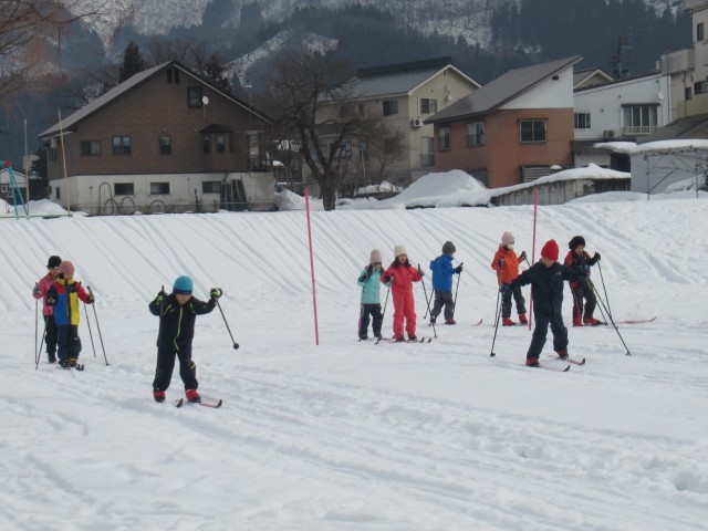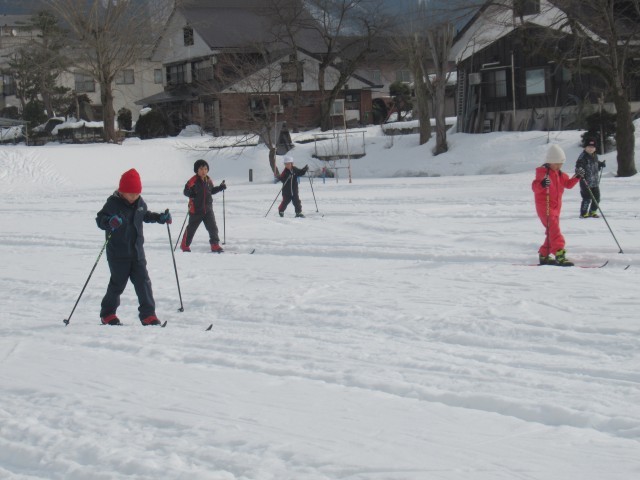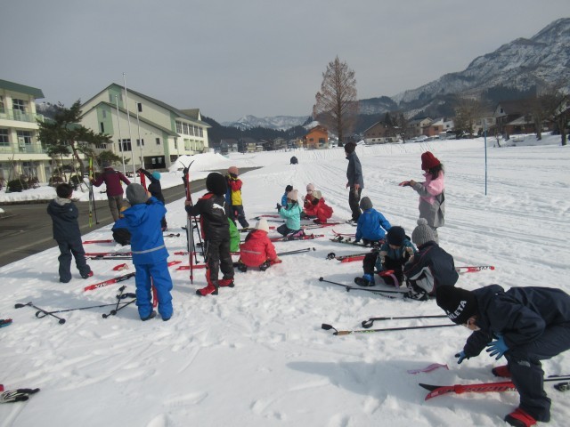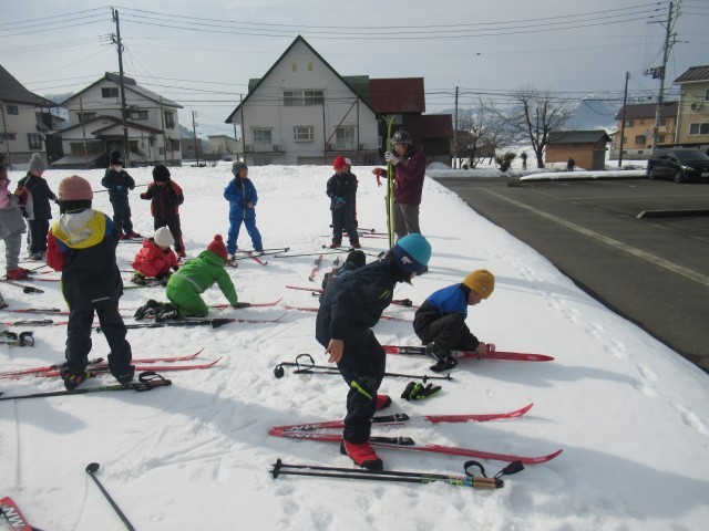 終わった後のスキーの留め方も、初めて雪の上でやっているとは思えないほど、上手でした。練習の成果ですね。