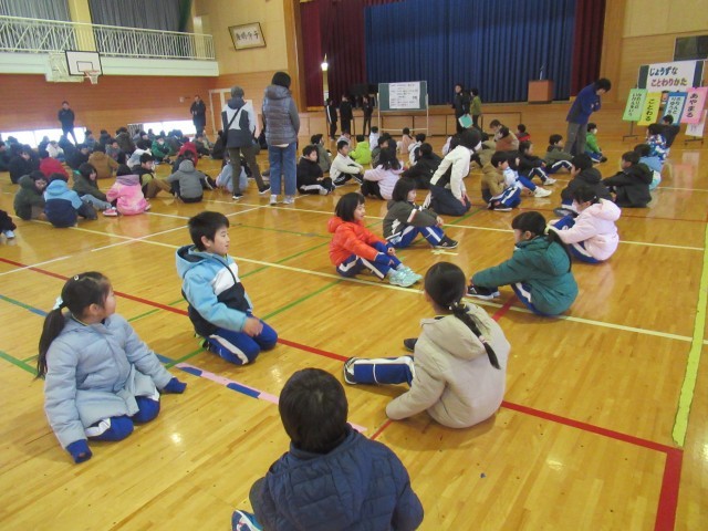 最後に、全校の子どもたちがペアになり、実際に誘ったり、断ったりする場面のやりとりを交互に行いました。全校の前で、練習したやりとりを発表してくれたペアの子どもたちもいました。