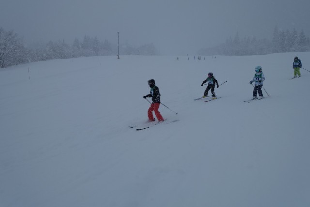 雪が降り積もり、滑ると足下から上がってくるようなゲレンデコンディションではありましたが、子どもたちは、元気に楽しく滑ることができました。