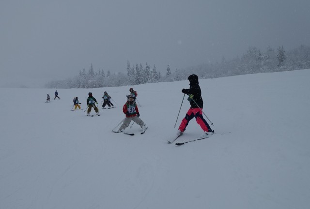 職員やスクール指導員の方に加えて、13人の保護者ボランティアのみなさんからおいでいただいたおかげで、小グループでスキー練習をすることができました。