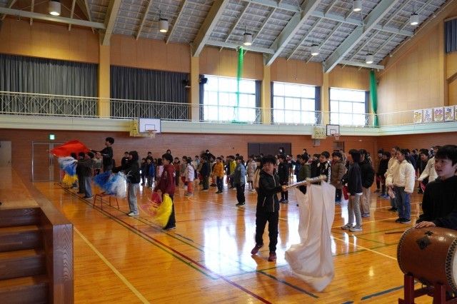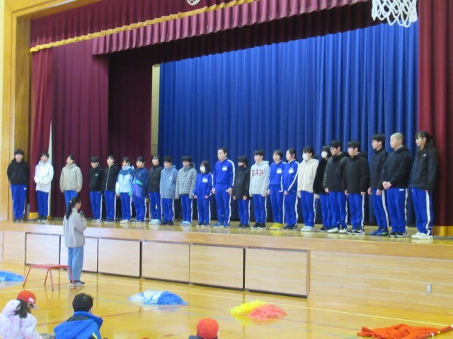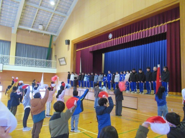 1~5年生の子どもたちが、6年生の健闘を祈って大きな声で応援をしたり、激励の言葉を伝えたりしました。