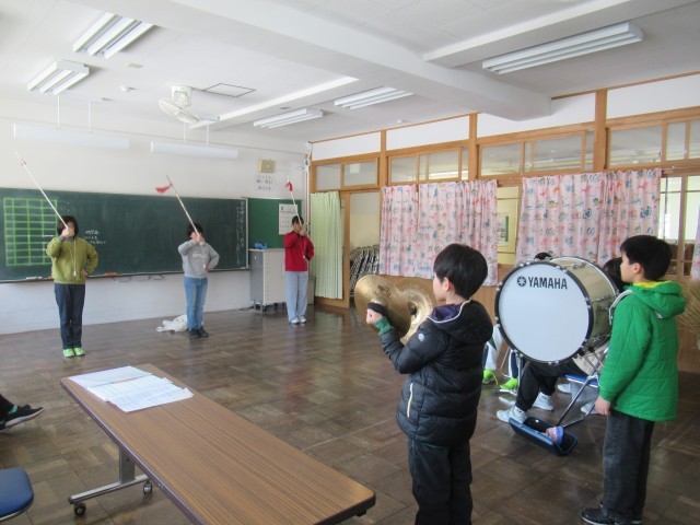 6時間目に、3,4,5,6年生の鼓笛練習を行いました。