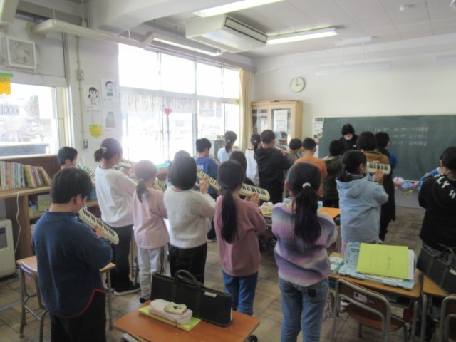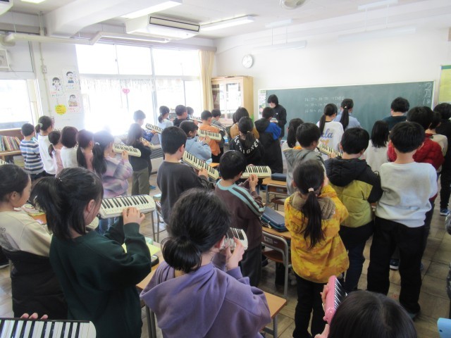 3,4年生は、鍵盤ハーモニカで校歌や市歌の練習を頑張りました。4年生に教えてもらって、3年生も随分滑らかに演奏できるようになりました。