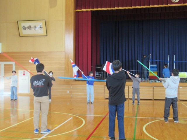 5,6年生は、鼓隊のそれぞれの楽器やフラッグなどに分かれて、練習しました。6年生から個別に教えてもらう最後の時間でした。