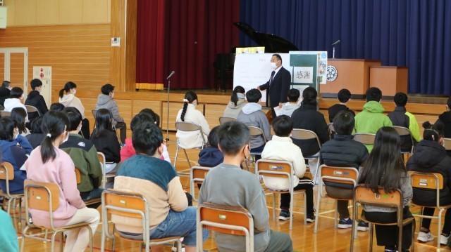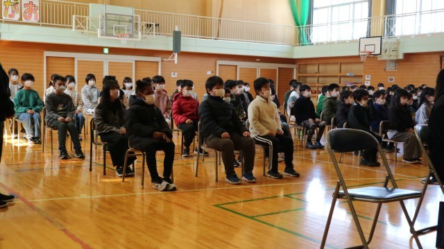 前回の音楽朝会のときに比べ、歌の声もずっと大きくなり、また呼びかけも、各学年でそろってよい声が出ていました。