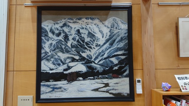 10月7日に、第1回(昭和22年度)卒業生御一同様(代表 永井様)から、本校創立150周年という節目の年にあたり、永井様の絵画作品「春を待つ八海山」をご寄贈いただきました。絵画は「やまびこホール」に展示させていただいています。創立150周年を迎えた本校にとって、第1回卒業生御一同様のご厚意は、記念すべき年に彩りを添える、大変ありがたい贈り物となりました。第1回卒業生御一同様、この度は誠にありがとうございました。