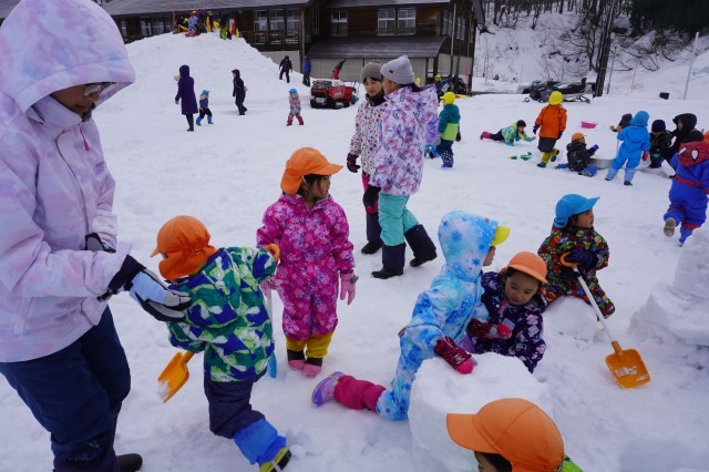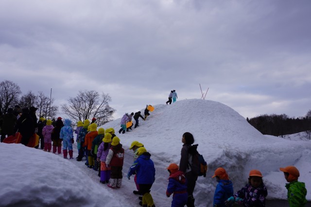 1月16日に、薮神保育園の年少さんから年長さんまでの園児の皆さんが遊びに来てくれました。グラウンドにできた雪山の上でのソリ遊びや雪だるま作りなど、楽しく過ごすことができました。薮神保育園の皆さん、ありがとうございました。