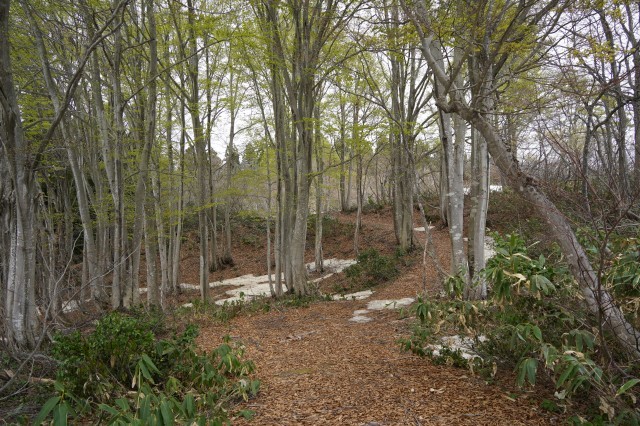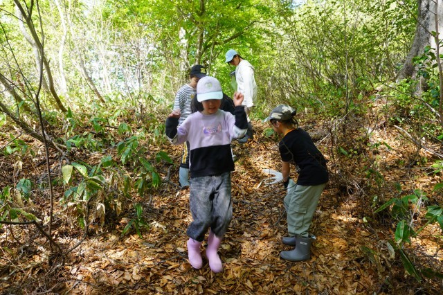 今年は昨年に比べ雪解けが早く、各学級では、学校近くの野山やブナ林に足を運び、新緑の景色を眺めたり、山菜を見付けたり、生き物を探したりしながら、春の自然を満喫しています。