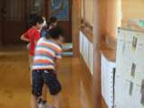 上級生がリーダーになりあいさつ郵便の時の動きの練習をしました。今回は、広場で地...