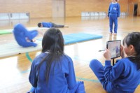 今日の体育はマット運動です。雪で覆われた体育館ですから、気温も低いのですが、子ど...