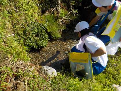 今日は、地域コーディネーターさんと一緒に、学区内の湧き水を見学し、生き物を探しに行ってきました。