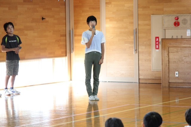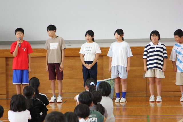 先月末に行われた陸上大会の結果を、全校に報告する会を行いました。