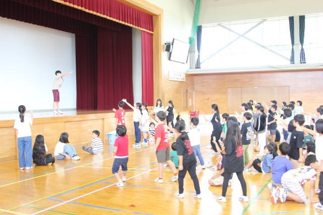 早く来た学年が時間をもてあましている状況を捉えて、6年生が「王様じゃんけんをやろう」と声を出し、その場でみんなで楽しみ始めたのです。