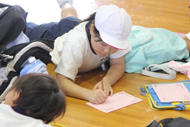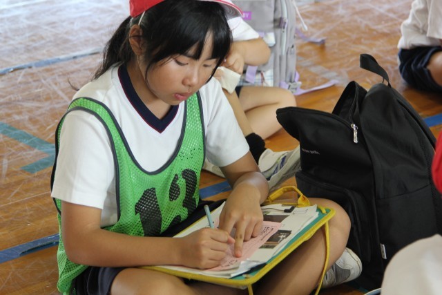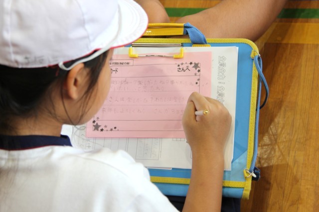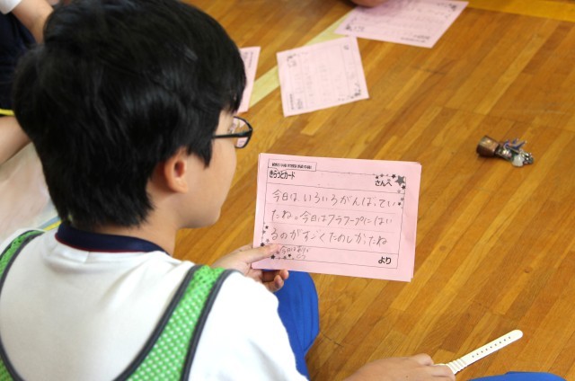 元気が出てきたところで、班のメンバーにメッセージカードを書いて渡し合いました。