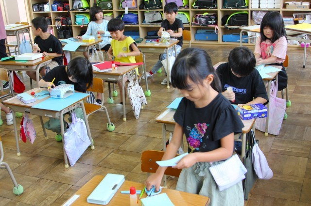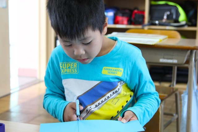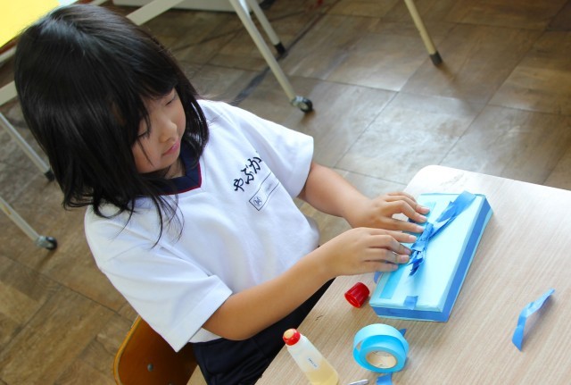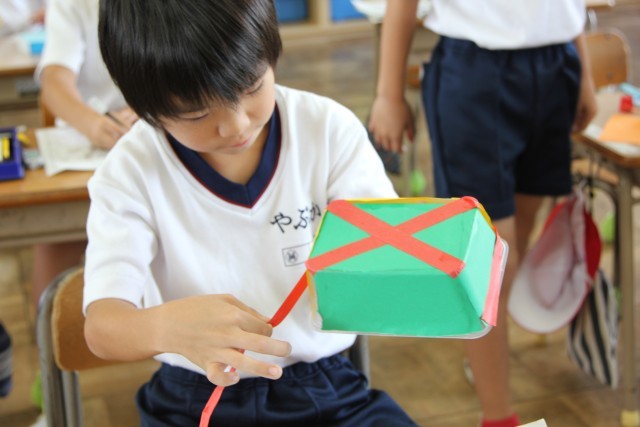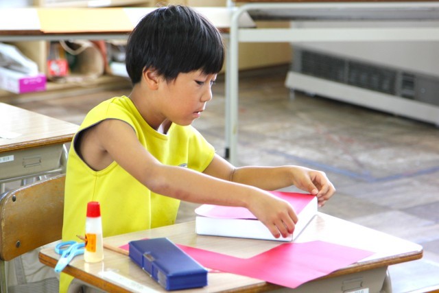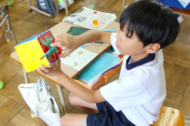 図工で、大切なものを入れる箱をつくる活動をしています。