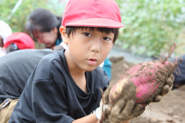収穫したさつまいもは、みんなで食べてみるそうです。